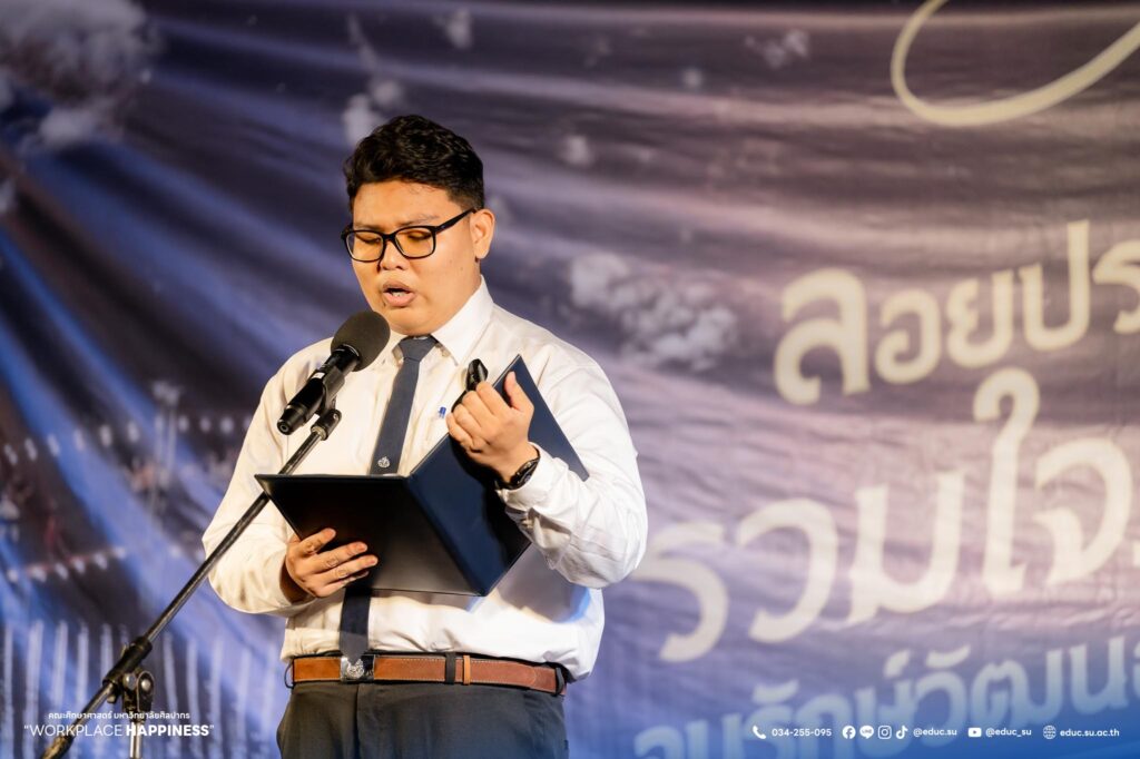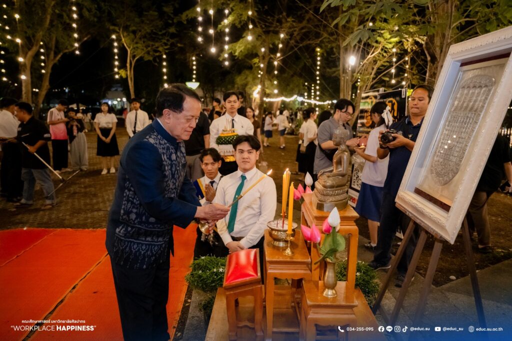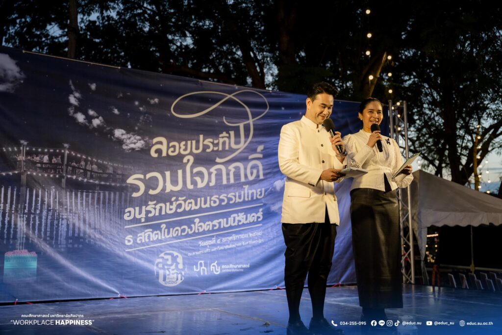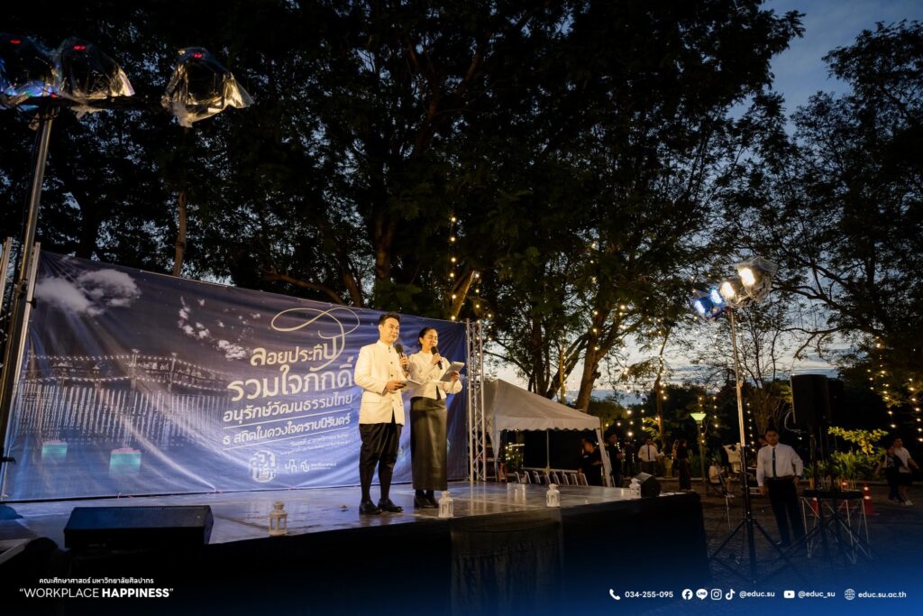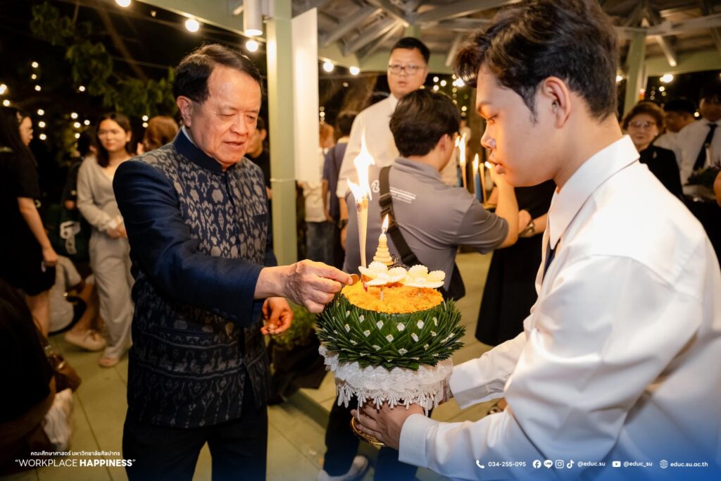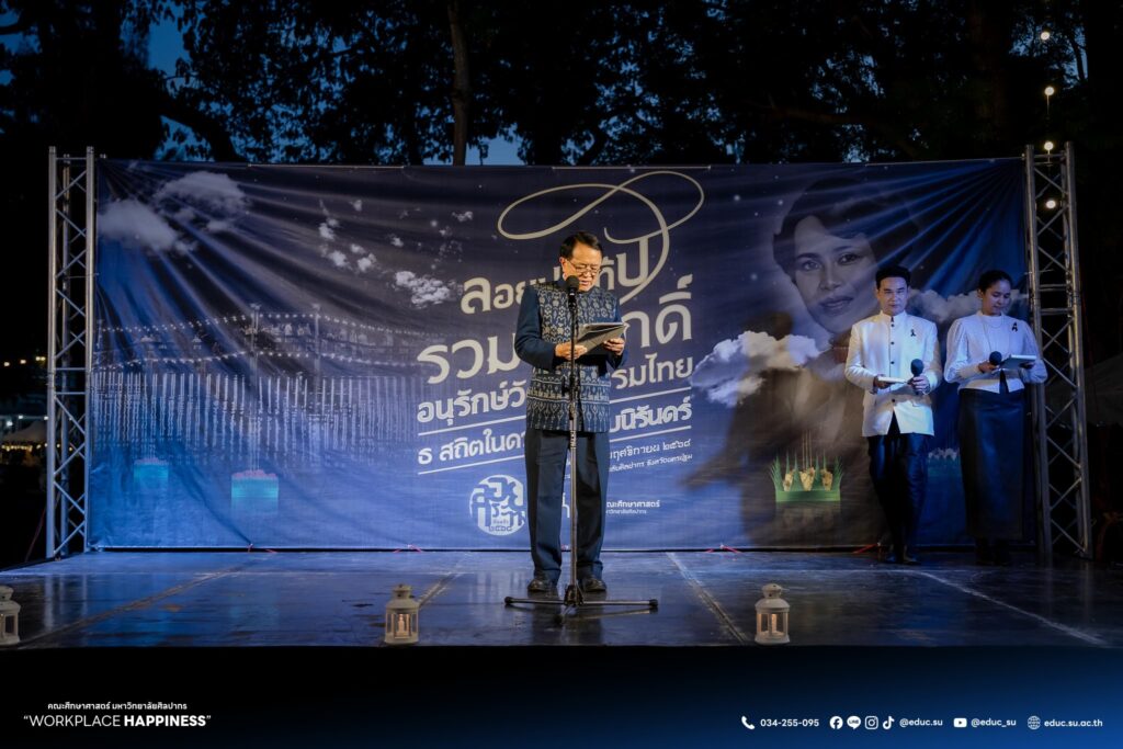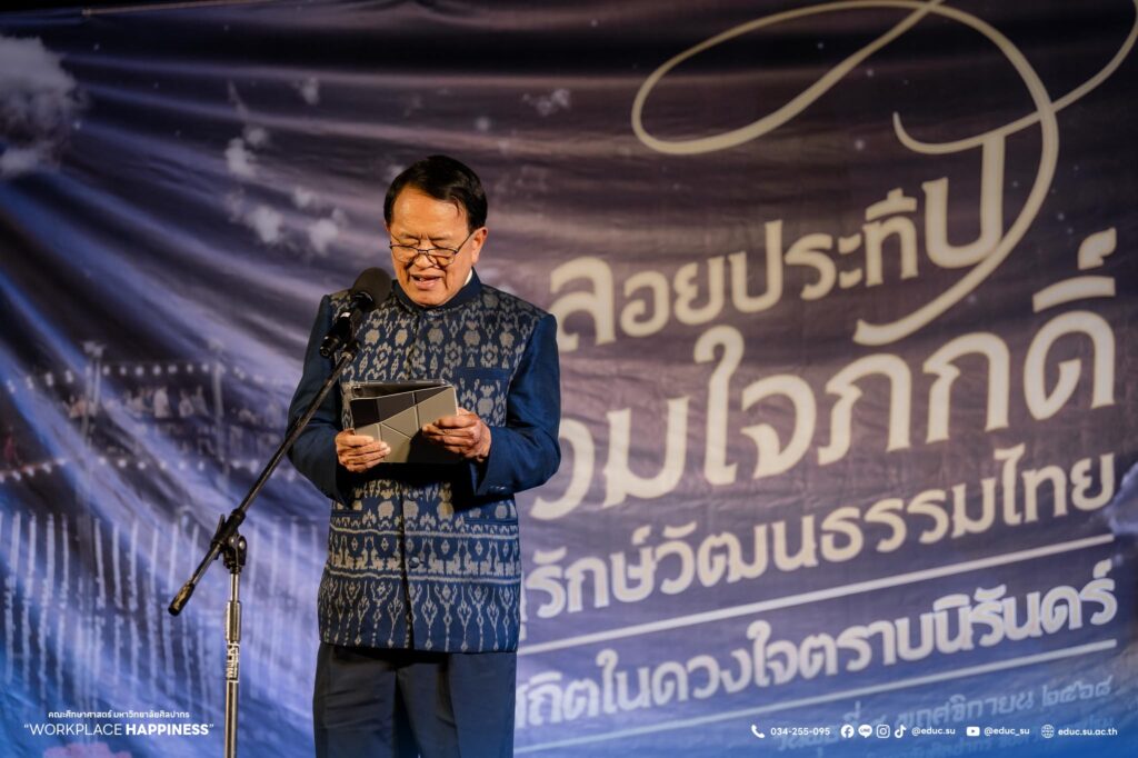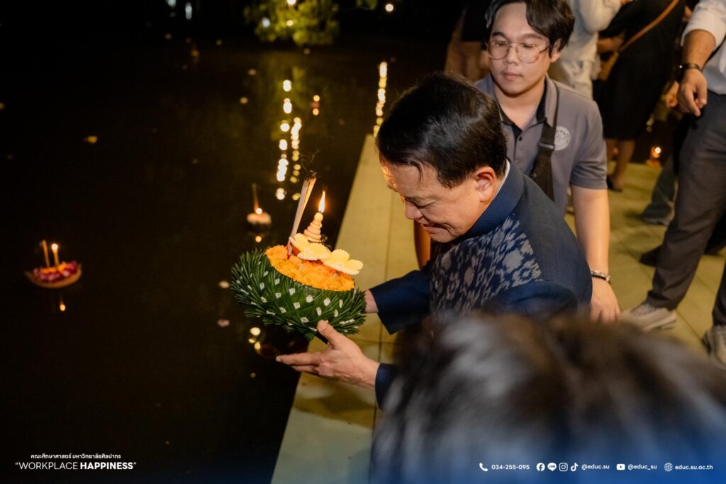 วันที่ 5 พฤศจิกายน 2568 ศาสตราจารย์ ดร.คณิต เขียววิชัย คณบดีคณะศึกษาศาสตร์ มหาวิทยาลัยศิลปากร พร้อมด้วยคณะผู้บริหาร คณาจารย์ บุคลากร นักศึกษา และประชาชน ร่วมลอยกระทงในงานประเพณีสืบสานวัฒนธรรมลอยกระทง คณะศึกษาศาสตร์ มหาวิทยาลัยศิลปากร ประจำปี 2568 “ลอยประทีปรวมใจภักดิ์ อนุรักษ์วัฒนธรรมไทย ธ สถิตในดวงใจตราบนิรันดร์” ณ มหาวิทยาลัยศิลปากร วิทยาเขตพระราชวังสนามจันทร์ จัดโดย คณะศึกษาศาสตร์ มหาวิทยาลัยศิลปากร
