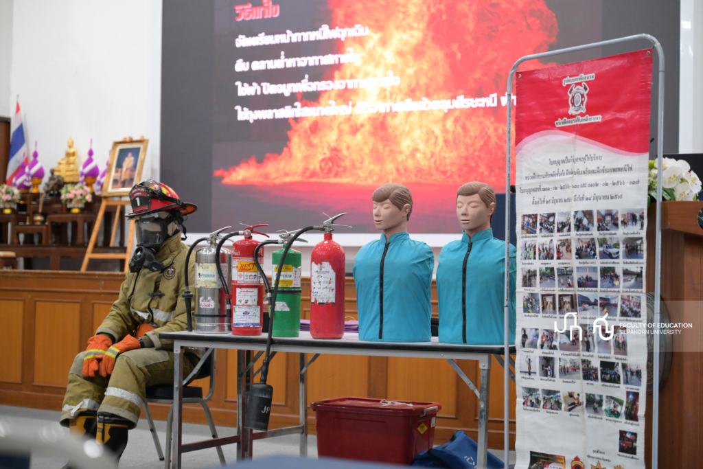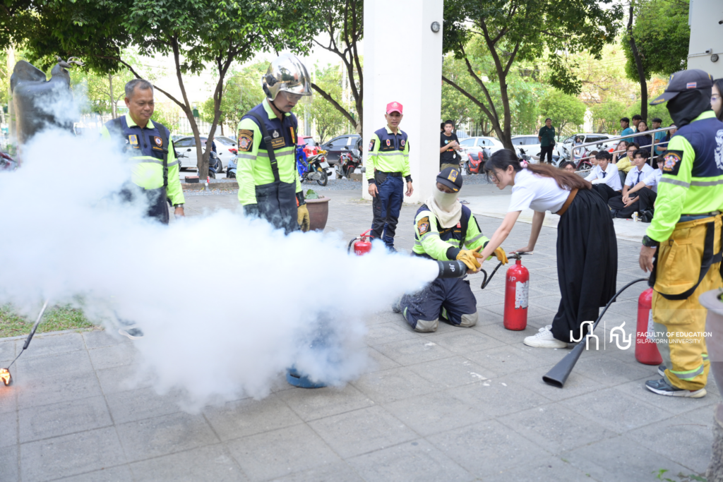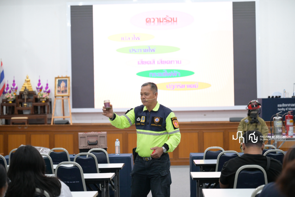 วันพุธที่ 18 มีนาคม 2569 คณะศึกษาศาสตร์ มหาวิทยาลัยศิลปากร จัดโครงการอบรมป้องกันอัคคีภัยประจำปี 2569 โดยมีวัตถุประสงค์เพื่อเสริมสร้างความรู้ความเข้าใจเกี่ยวกับการป้องกันและรับมือกับอัคคีภัยให้แก่บุคลากรและนักศึกษา โดย ศาสตราจารย์ ดร.คณิต เขียววิชัย คณบดีคณะศึกษาศาสตร์ มหาวิทยาลัยศิลปากรประธานในพิธีเปิด ได้กล่าวถึงความสำคัญของการเตรียมความพร้อมในสถานการณ์ฉุกเฉิน พร้อมเชิญชวนผู้เข้าร่วมอบรมให้ตระหนักถึงการปฏิบัติตัวอย่างถูกต้องและปลอดภัย