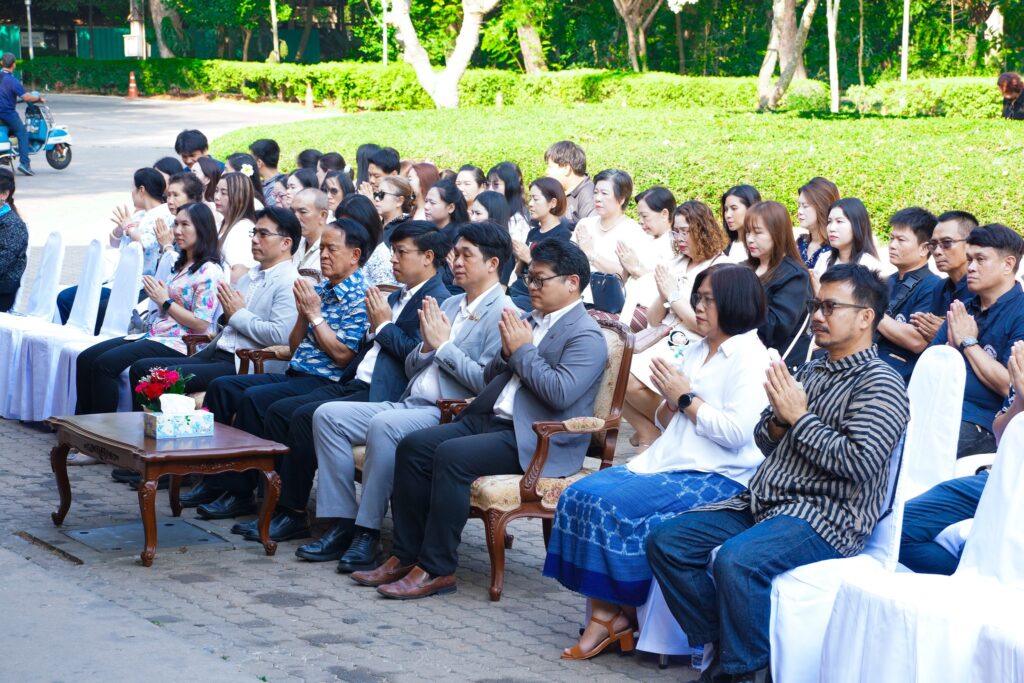 โดย ผู้ช่วยศาสตราจารย์ ดร.ระพีพันธ์ แก้วอ่อน รองอธิการบดีพระราชวังสนามจันทร์ เป็นประธานในพิธี พร้อมด้วยผู้บริหารจากคณะวิชาต่าง ๆ คณาจารย์ บุคลากร และนักศึกษามหาวิทยาลัยศิลปากร เข้าร่วมงาน ณ ลานหน้าสำนักงานอธิการบดี มหาวิทยาลัยศิลปากร วิทยาเขตพระราชวังสนามจันทร์ จังหวัดนครปฐม